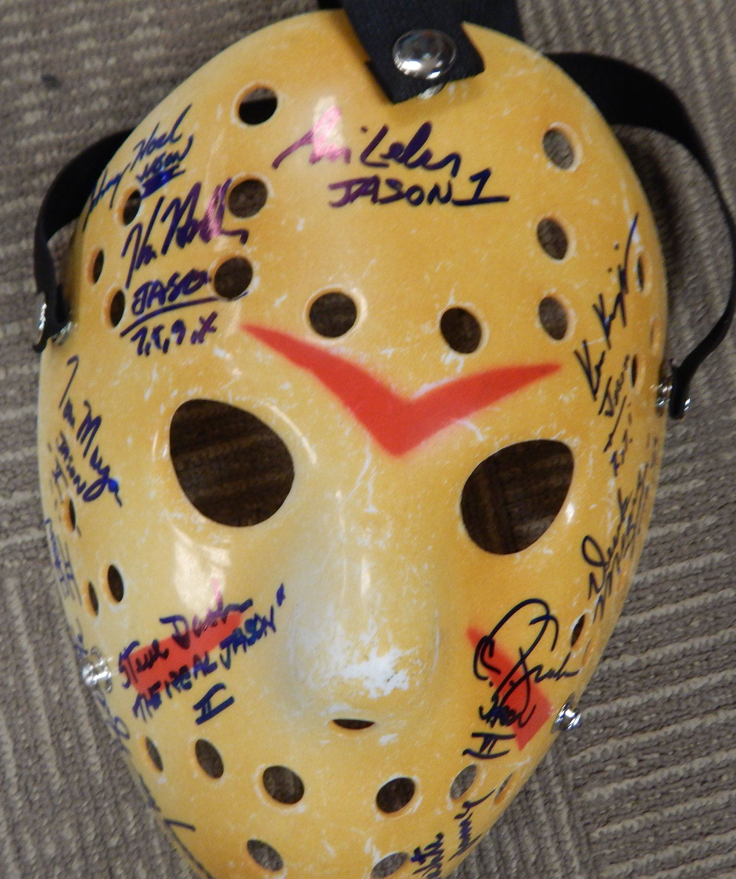 Replica Friday the 13th mask signed in person by every actor who has portrayed Jason. The signatures were obtained during private signing events over a period of time. All items come with a certificate of authenticity good for the life of the piece.