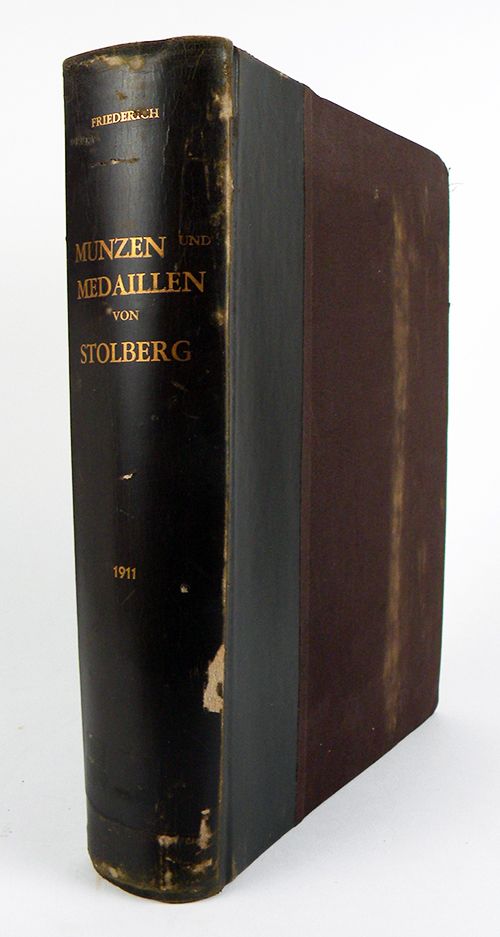 Friedrich, Karl. DIE MÜNZEN UND MEDAILLEN DES HAUSES STOLBERG UND DIE GESCHICHTE SEINES MÜNZWESENS. Dresden: Kommissionsverlag C.G. Thieme, 1911. First edition. Thick 4to, contemporary brown quarter baby calf, gilt. (8), 425, (3) pages; text illustrations; 38 fine Lichtdruck plates. Binding rubbed; internally fine. The original edition of this very scarce standard work. Clain-Stefanelli 9597*.