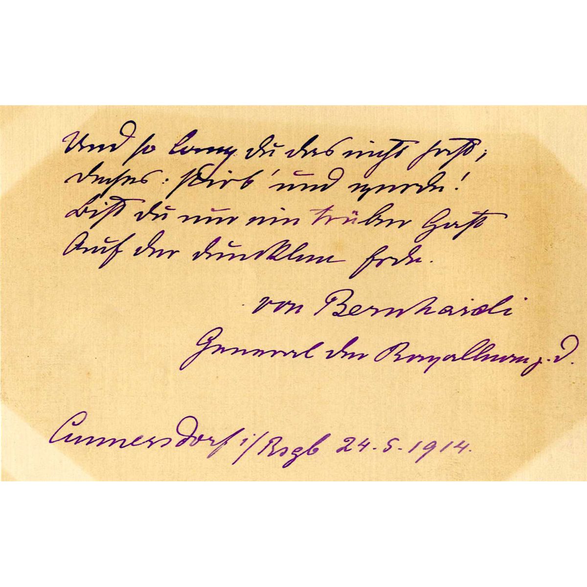 Signature of German General Friedrich von Bernhardi -- Pro-Aggressor Declared War as ''Divine Business'' -- 5.25'' x 3.5'' -- Near Fine