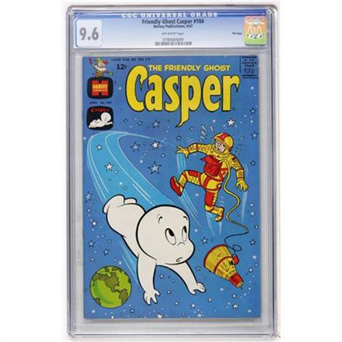 <B>Friendly Ghost Casper #104 File Copy (Harvey, 1967) CGC NM+ 9.6 Off-white pages.</B></I> Highest-graded copy certified by CGC to date. Overstreet 2007 NM- 9.2 value = $22. CGC census 1/08: 1 in 9.6, none higher.<BR><BR><b>Shipping:</b> Comics - Slabbed (certified) (<a target="_blank" href="http://www.heritageauctions.com/common/shipping.php">view shipping information</a>)