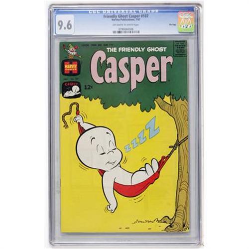 <B>Friendly Ghost Casper #107 File Copy (Harvey, 1967) CGC NM+ 9.6 Off-white to white pages.</B></I> Highest-graded copy certified by CGC to date. Overstreet 2007 NM- 9.2 value = $22. CGC census 1/08: 1 in 9.6, none higher.<BR><BR><b>Shipping:</b> Comics - Slabbed (certified) (<a target="_blank" href="http://www.heritageauctions.com/common/shipping.php">view shipping information</a>)