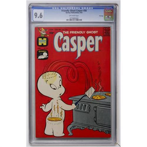 <B>Friendly Ghost Casper #56 File Copy (Harvey, 1963) CGC NM+ 9.6 Off-white pages.</B></I> Overstreet 2007 NM- 9.2 value = $32. CGC census 6/07: 1 in 9.6, none higher. <I>From the Cary and Cheryl Porter Collection.</B></I><BR><BR><b>Shipping:</b> Comics - Slabbed (certified) (<a target="_blank" href="http://www.heritageauctions.com/common/shipping.php">view shipping information</a>)