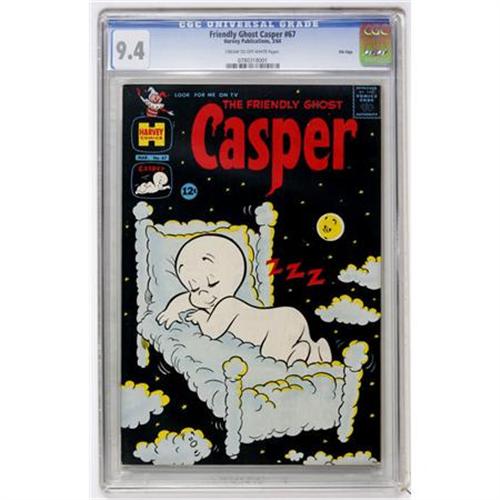 <B>Friendly Ghost Casper #67 File Copy (Harvey, 1964) CGC NM 9.4 Cream to off-white pages.</B></I> Overstreet 2007 NM- 9.2 value = $32. CGC census 10/07: 1 in 9.4, 2 higher.<BR><BR><b>Shipping:</b> Comics - Slabbed (certified) (<a target="_blank" href="http://www.heritageauctions.com/common/shipping.php">view shipping information</a>)