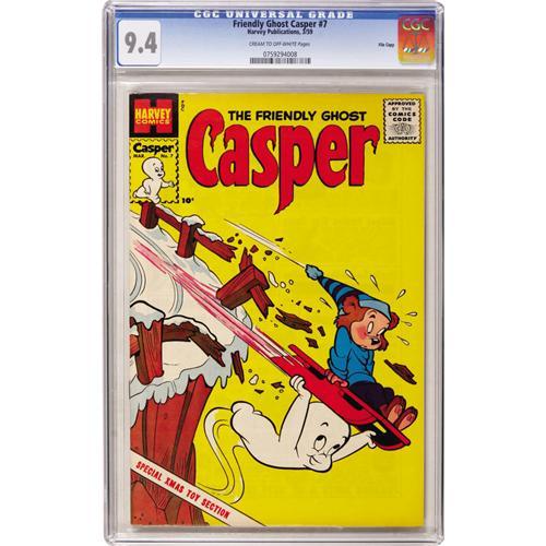 <B>Friendly Ghost Casper #7 File Copy (Harvey, 1959) CGC NM 9.4 Cream to off-white pages.</B></I> Contains a Christmas toy catalog. Overstreet 2006 NM- 9.2 value = $120. CGC census 3/07: 1 in 9.4, none higher. <I> From the Cary and Cheryl Porter Collection.</B></I><BR><BR><b>Shipping:</b> Comics - Slabbed (certified) (<a target="_blank" href="http://www.heritageauctions.com/common/shipping.php">view shipping information</a>)