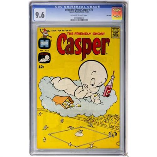 <B>Friendly Ghost Casper #75 File Copy (Harvey, 1964) CGC NM+ 9.6 Off-white to white pages.</B></I> Overstreet 2007 NM- 9.2 value = $26. CGC census 6/07: 1 in 9.6, none higher. <I>From the Cary and Cheryl Porter Collection.</B></I><BR><BR><b>Shipping:</b> Comics - Slabbed (certified) (<a target="_blank" href="http://www.heritageauctions.com/common/shipping.php">view shipping information</a>)