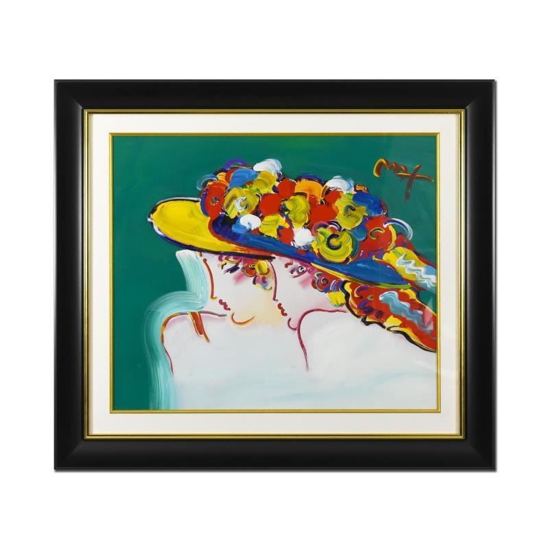 "Friends III" is a one-of-a-kind acrylic mixed media on paper, hand signed by Peter Max. This piece comes custom framed. Includes Certificate of Authenticity from Peter Max Studios. Measures approx. 43.5" x 38.5" (with frame), 32" x 27" (image).