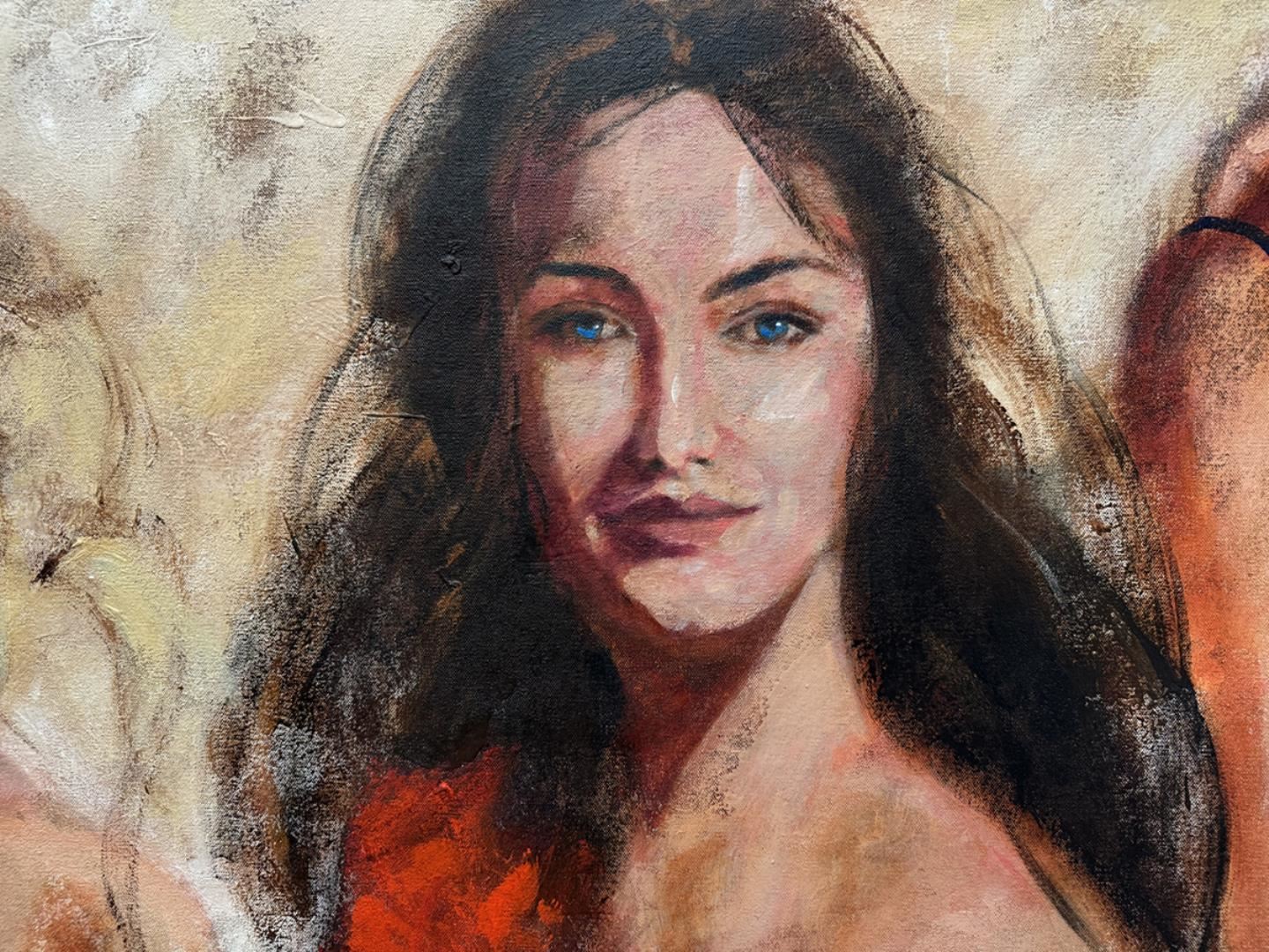 Stunning original acrylic on canvas signed by the artist. This artwork comes rolled in a tube for easy shipping Art size 60x60 inches.