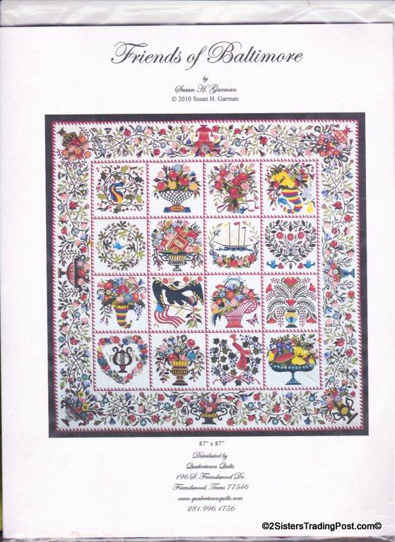 Friends of Baltimore Month Eleven 'Ferns and Lily Berries' & 'The First Rose Bouquet' by Susan H. Garman 2010. Pack includes fabric and patterns for both. MSRP $36.95