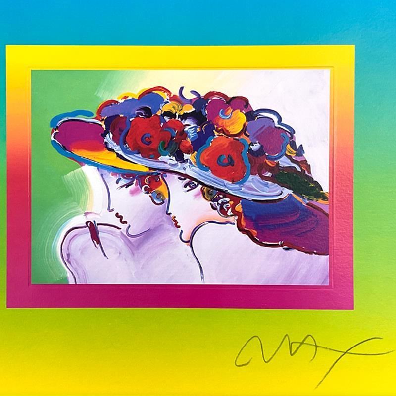 "Friends on Blends" is a limited edition lithograph on paper by Peter Max numbered and hand signed by the artist. This piece comes framed. Includes Certificate of Authenticity from Peter Max Studios. Measures approx. 20" x 23" (frame) 10" x 13" (image).