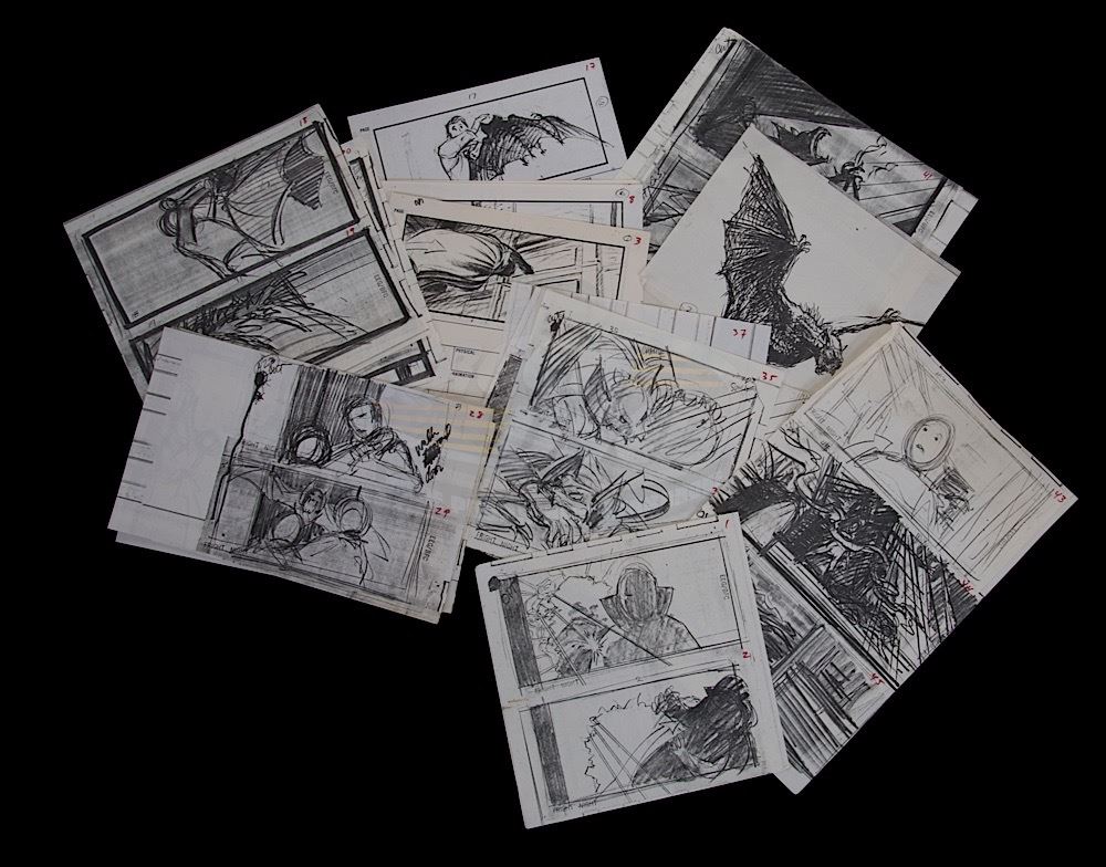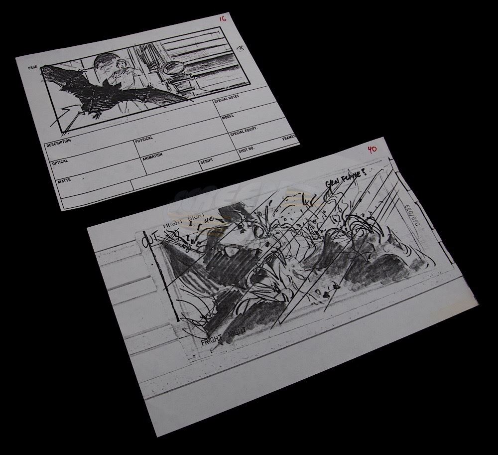 (Columbia Pictures, 1985) This collection of 37 production used storyboard copies feature various scene and shot details. Most of the copies have hand written numbers from the production. Wear from use, as expected. The pages range in size from 11" x 17" to 8.5" x 11".