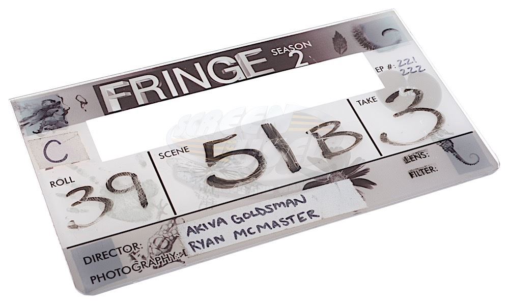 (Warner Bros. Television, 2008) This digital clapper board face was used during filming of the second season and features the show's title and markings from its final shot. Showing signs of use, a great artifact from the production of the series. Measures 11" x 6".
