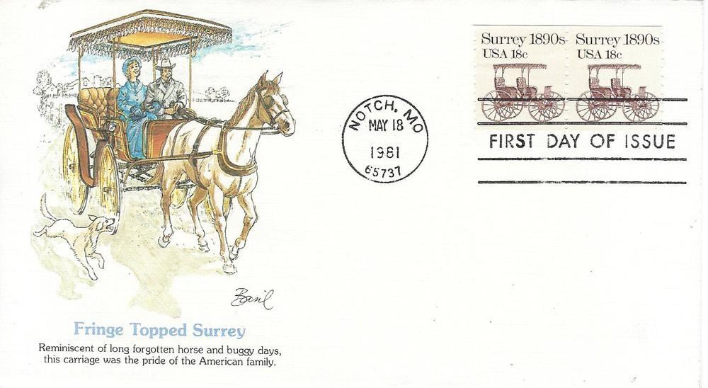 Fringe Topped Surrey USA FDC, Notch MO - May 18 1981