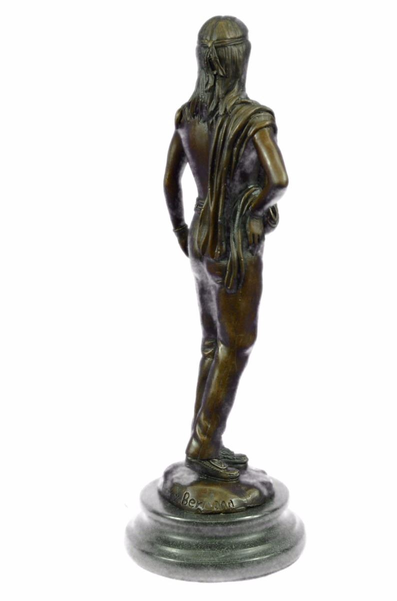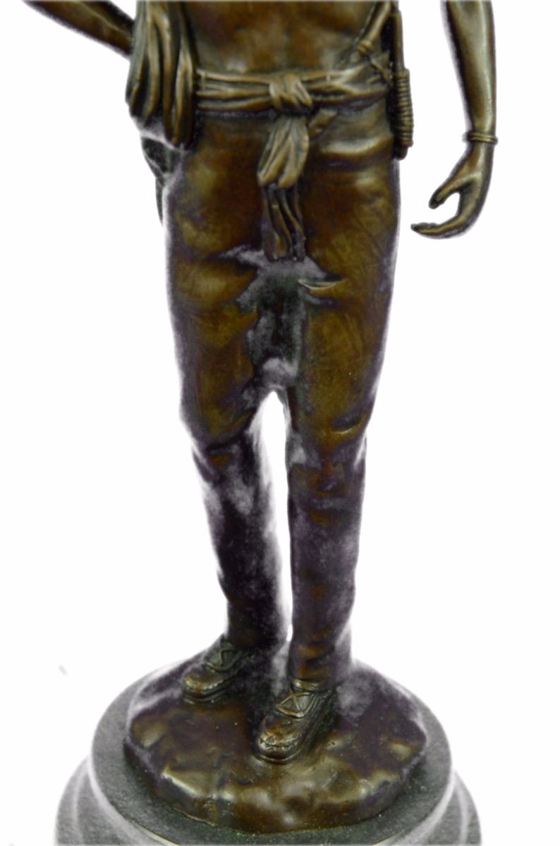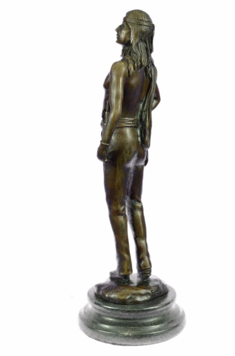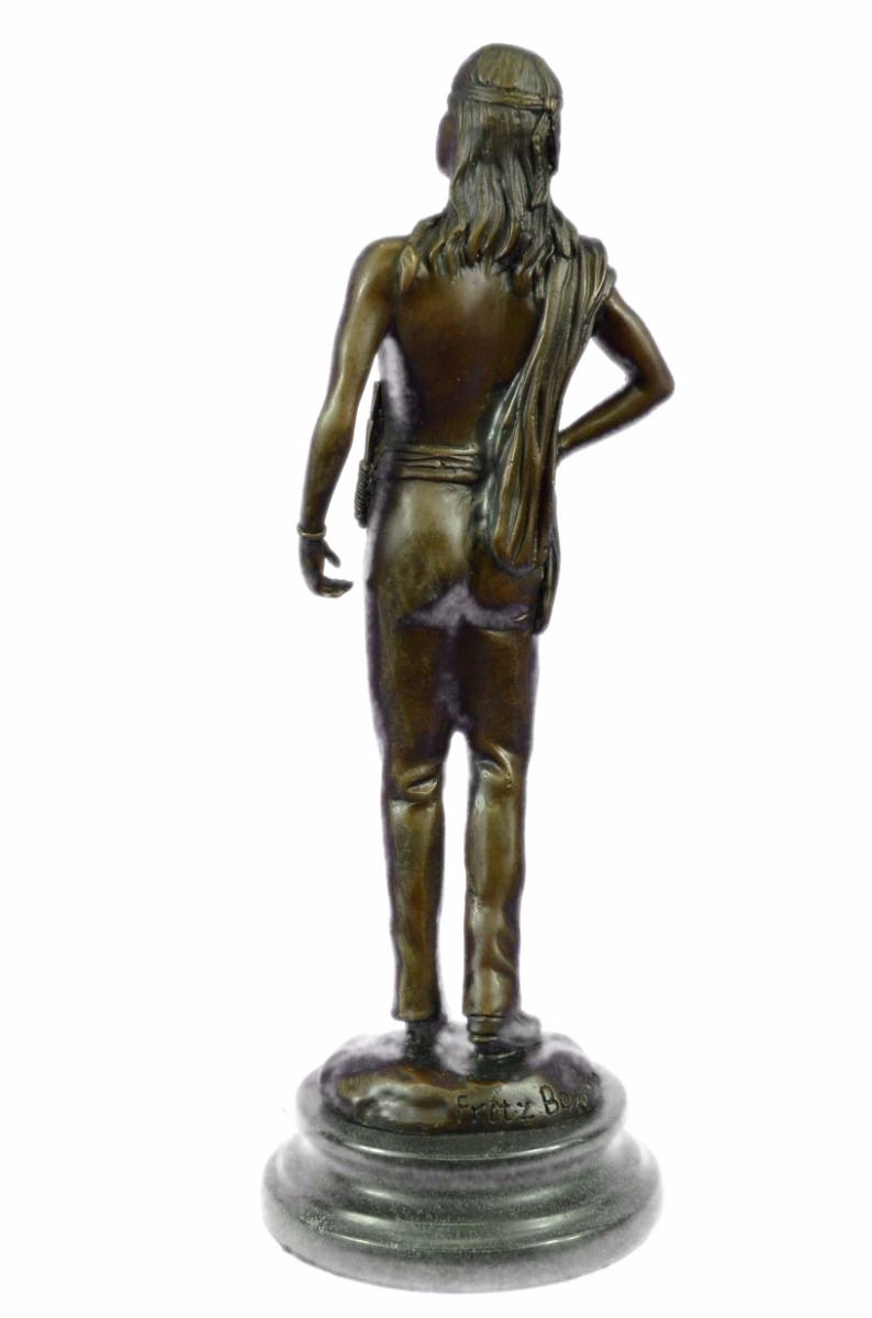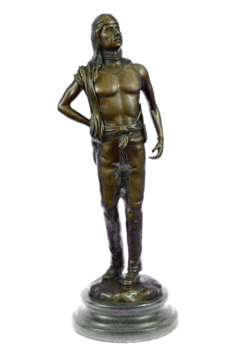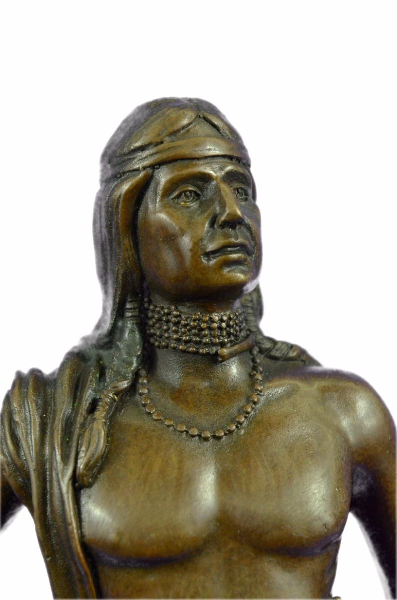This Impressionistic Sculpture Of The Indian Chief Instills A Since Of Pride, Respect, And Honor. He Has A Traditional Necklace. His Hair Is Straighten And Falls Onto His Back. His Face Is Old And Worn, He Is A Man Of Many Places And Time, And He Can Tell You Stories Of A Thousand Years. This Is A Very Spiritual And Tranquil Piece. This Sculpture Was Casted Using The “Lost Wax Method” And Has A Brown Patina. It Is Handmade And Sits On A Brown Marble Base. Bronze Dimensions With Marble Base: Height 14 X Width 5 inches. Weight: 7 Lbs. This Is Not An Original Of His Work But A Recent Reproduction.