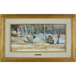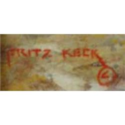 Fritz Keck (Montana) Oil on Board. "Ulterior Motive." 12" x 24". signed lower left. Estimate $500 - $750.