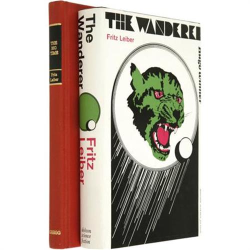<B>Fritz Leiber: Two First Hardcover Editions.</B></I> Includes the following: <BR><B><I>The Wanderer.</B></I></B></I> With signed bookplate mounted to card (not attached). (London: Dennis Dobson, 1967), first hardcover edition, 346 pages, black boards, 8vo, dust jacket. Condition (book/ dj): fine/ fine. <BR><B><I>The Big Time.</B></I></B></I> (Boston: Gregg Press, 1976), first hardcover edition, 129 pages, red boards, 8vo, no dust jacket as issued. Condition: fine.<BR><BR><b>Shipping:</b> Books & Catalogs (<a target="_blank" href="http://www.heritageauctions.com/common/shipping.php">view shipping information</a>)