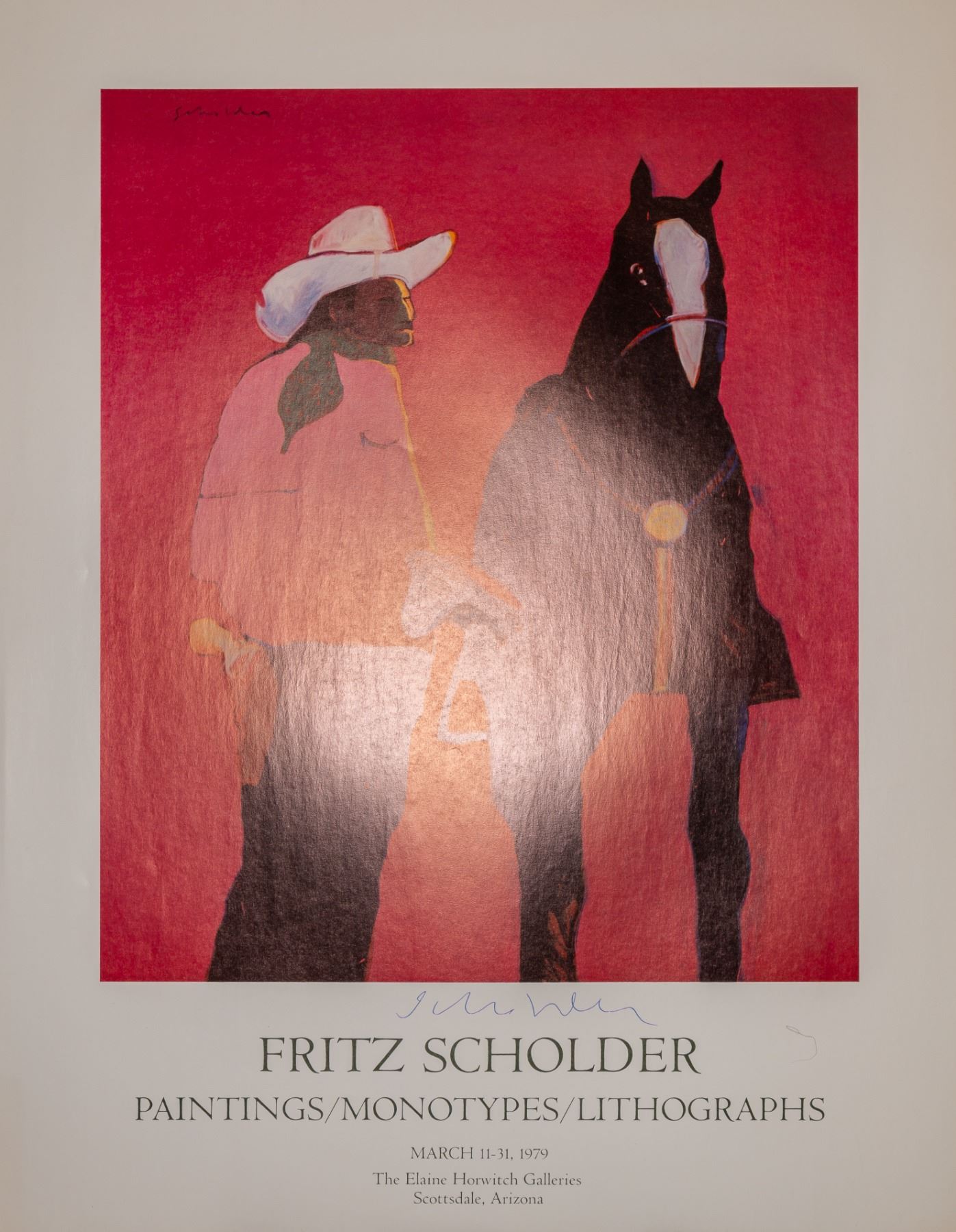 Autographed poster for an exhibition of works by the artist Fritz Scholder that took place from March 11-31, 1979, at The Elaine Horwitch Galleries in Scottsdale, Arizona.