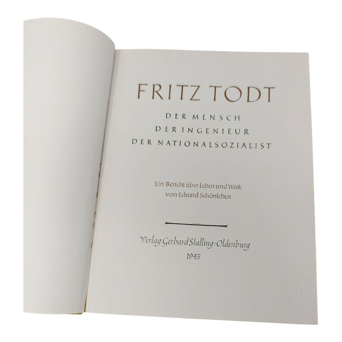 Fritz Todt – The Man, the Engineer, the National Socialist - Signed by Wife + Daughter. This book was produced as a memorial volume, portraying Todt as:A model of the “National Socialist engineer” — disciplined, visionary, and ideologically loyal.A central figure linking technology, infrastructure, and ideology in Nazi propaganda.Contents typically include:Speeches and essays about Todt’s life and careerPhotographs of Autobahn projects and Todt at workContributions by high-ranking Nazi officials (e.g., Albert Speer, Hitler, or Robert Ley)Themes of sacrifice, duty, and technical idealism