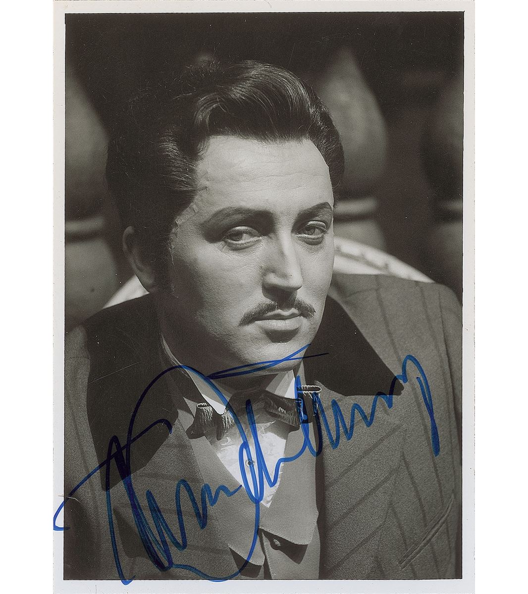 Gifted German operatic tenor (1930–1966) who died from a fall at the age of 36. Appealing glossy 4 x 5.75 postcard photo of Wunderlich as Alfred from the opera La Traviata, signed in blue felt tip. Reverse bears a Rudolf Betz photography stamp. In fine condition.