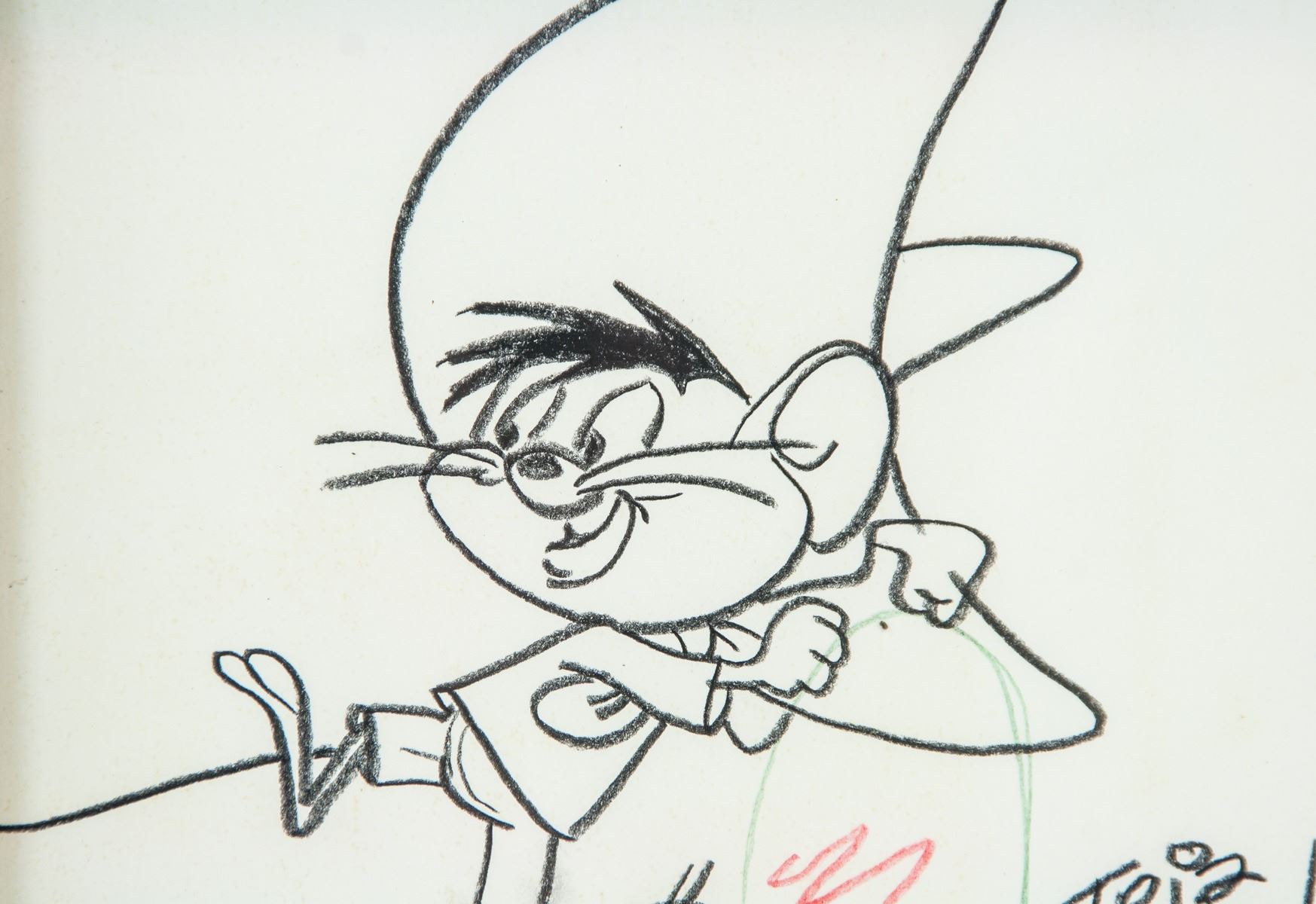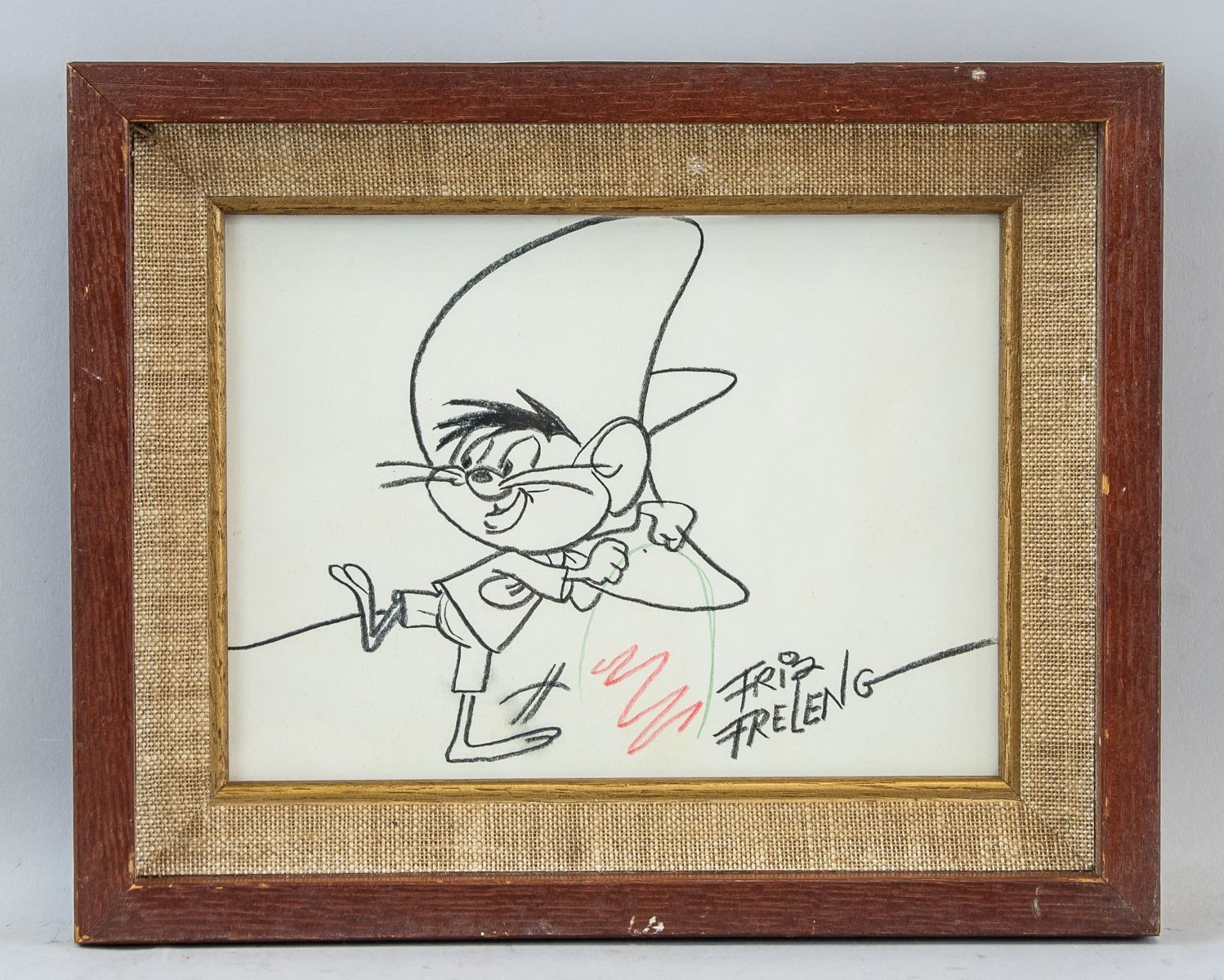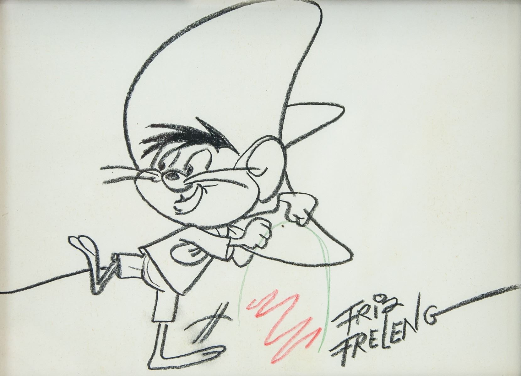 Charcoal and pencil on paper. American Pop Art School. Featuring a mouse in a sombrero hat. Signed Friz Freleng on the lower right corner. 14 x 19 cm (5.5 x 7.5 inches), frame: 21 x 26.5 cm (8.3 x 10.4 inches). PROVENANCE: Southern Ontario estate.