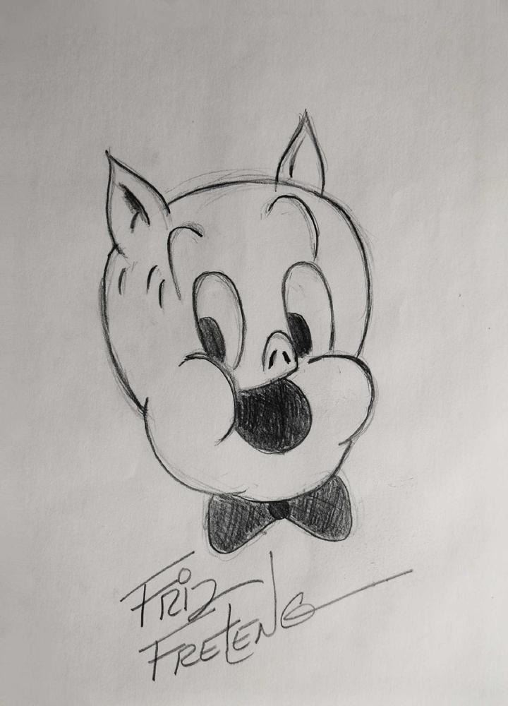 Porky Pig 8 in. by 11 in. Hand drawn sketch signed: Friz Freleng