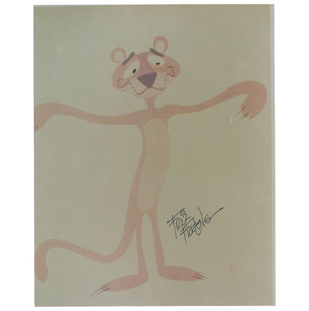 Color glossy 8 x 10 photo of an early version of The Pink Panther, signed in black felt tip. In fine condition.