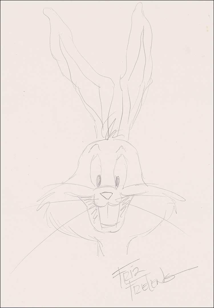 Original signed pencil sketch of Bugs Bunny on an off-white 7 x 10 card. In very fine condition. RRAuction COA.