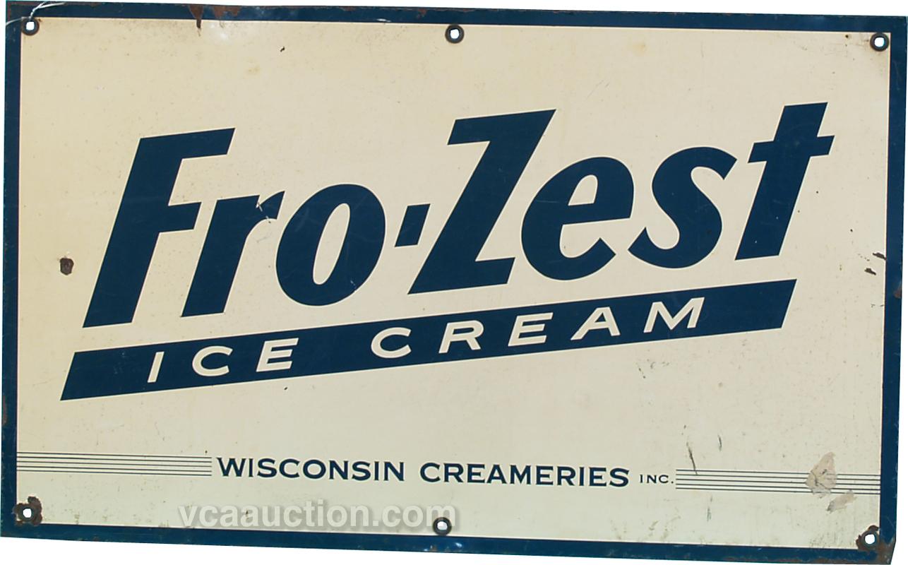 "Fro-Zest Ice Cream" Tin Sign Wisconsin Creameries Inc. - 26" x 16"