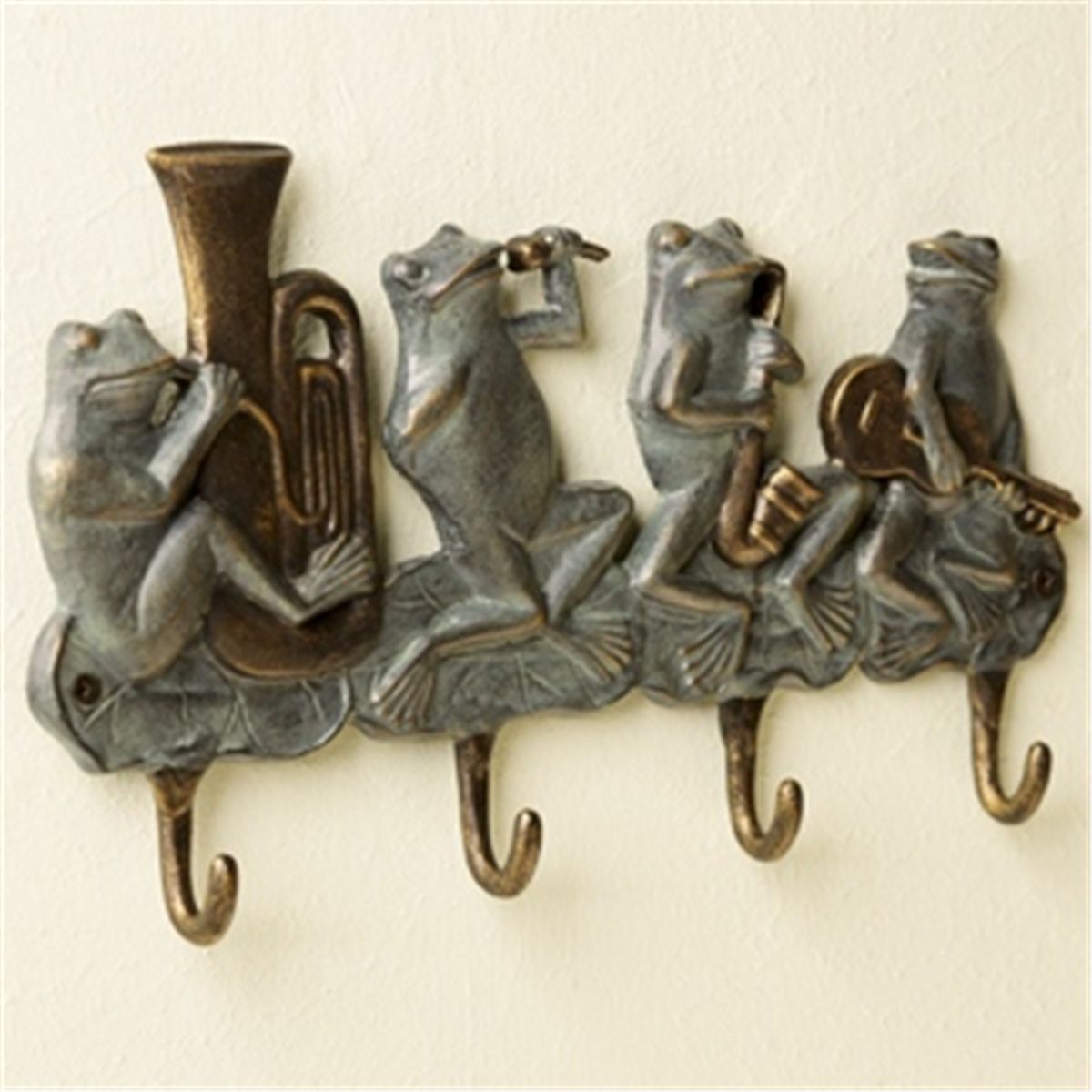Frog Band Key Hook - Verdi & Bronze Finish - 6.5"H 11"W 1"D - Aluminum