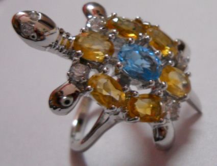Frog Design Ring of Citrine,Blue Topaz and CZ of weight 6.880g Sterling Silver