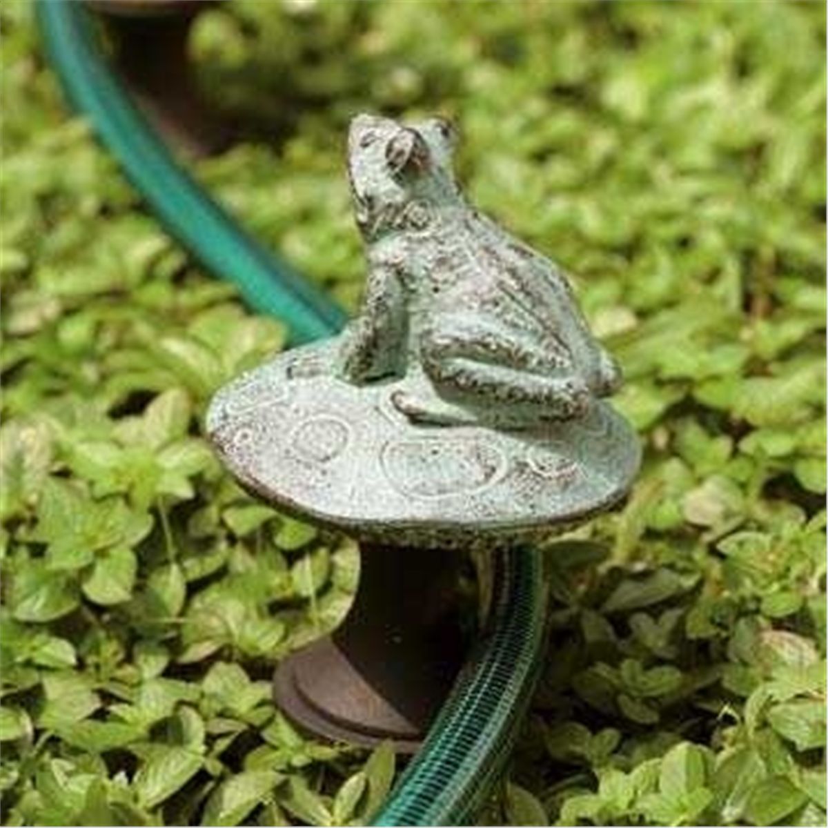 Frog On Mushroom Hose Guard - 15"H 4"W 4"D - Aluminum & Iron