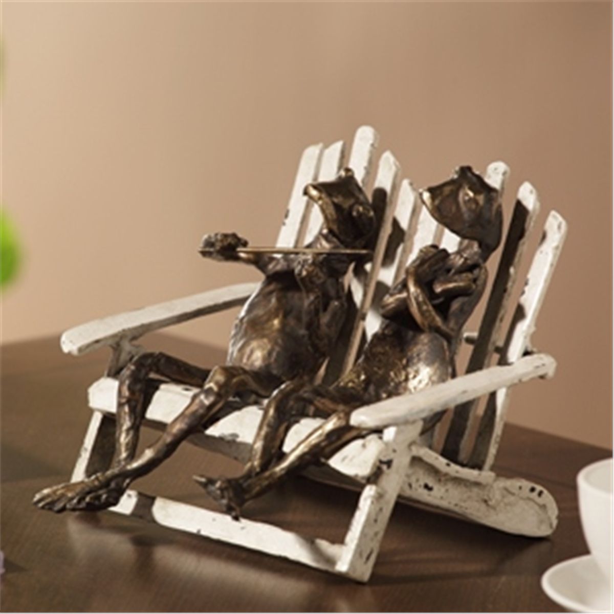 Frog Pair On Beach Chair Sculpture - 6" X 8" X 7" - Cast Iron