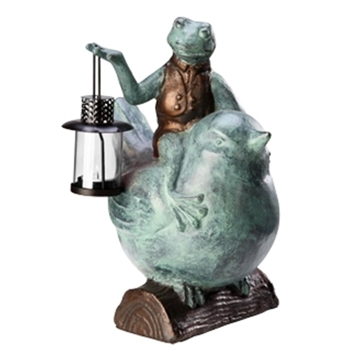 Frog Riding Bird Lantern - 13.5"H 10.5"W 9.5"D - Cast Iron