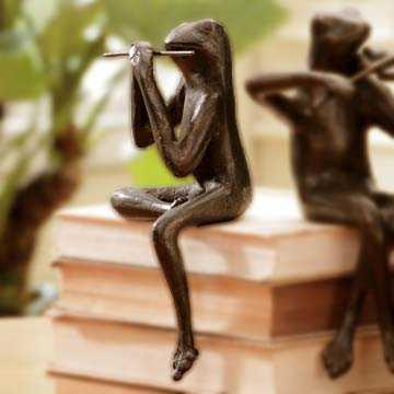 Frog With Flute Shelf Sitter - 7.5"x5"x3" - Iron