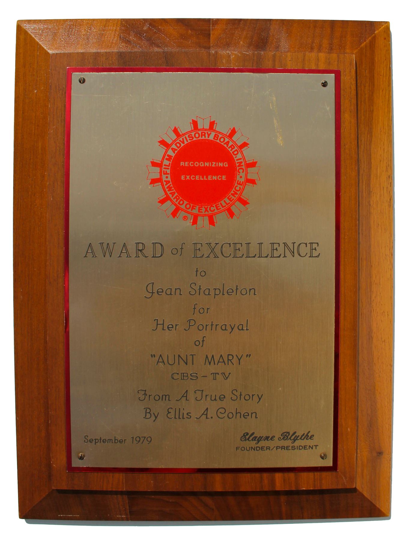 From Jean Stapleton Estate, Her 1979 Excellence Award