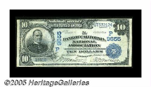 <B>From Sea to Shining Sea and Back</B></I><BR><B>San Francisco, CA</B></I> - $10 1902 Date Back Fr. 619 <B>The Bank of California</B></I> Ch. # (P)9655 <B>Fine</B></I><BR><B>New York, NY</B></I> - $20 1902 Date Back Fr. 643 <B>The National City Bank</B></I> Ch. # (E)1461 <B>VG-Fine<B><BR><B>Spokane, WA</B></I> - $5 1902 Plain Back Fr. 602 <B>The Old NB</B></I> Ch. # (P)4668 <B>Fine.</B></I><BR>