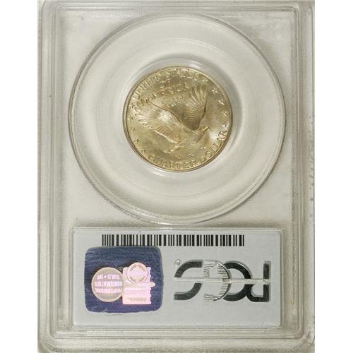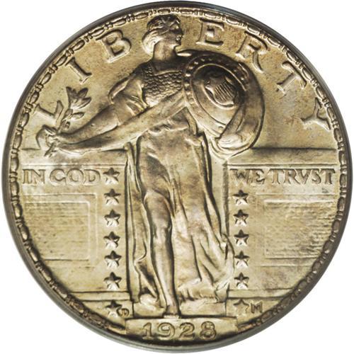 <B>1928-D 25C MS66 Full Head PCGS.</B></I> The striking details of this scarcer D-mint issue are especially bold, narrowly missing full definition on the shield, while a light coat of golden toning is seen on each side. Essentially mark-free, just a couple of tiny abrasions are seen in the reverse field. Population: 15 in 66, 2 finer (3/07).<BR><I>From The Encinitas Collection.</B></I><BR><BR><b>Shipping:</b> Coins & Currency (<a target="_blank" href="http://www.heritageauctions.com/common/shipping.php">view shipping information</a>) <BR><BR><B>Important notice:</