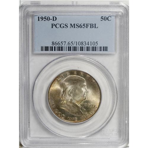<B>1950-D 50C MS65 Full Bell Lines PCGS.</B></I> Fully struck and highly lustrous, with pleasing lime and peach-red patina on the obverse, and a bright silver reverse with a few splashes of speckled russet color. Carefully preserved with few surface marks.<BR><I>From The Southern Collection.</B></I><BR><BR><b>Shipping:</b> Coins & Currency (<a target="_blank" href="http://www.heritageauctions.com/common/shipping.php">view shipping information</a>) <BR><BR><B>Important notice:<