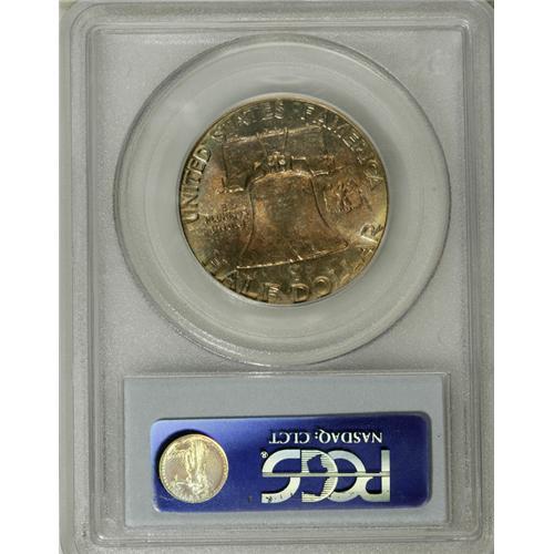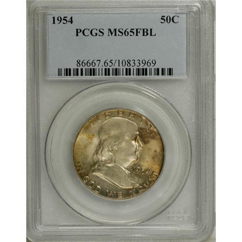 <B>1954 50C MS65 Full Bell Lines PCGS.</B></I> Pleasing luster covers both sides, with mottled lime-gold and steel-gray toning on the obverse, and bright mint-green and amber-red coloration on the reverse. Nicely struck with few surface blemishes.<BR><I>From The Southern Collection.</B></I><BR><BR><b>Shipping:</b> Coins & Currency (<a target="_blank" href="http://www.heritageauctions.com/common/shipping.php">view shipping information</a>) <BR><BR><B>Important notice:<