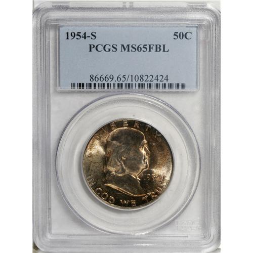 <B>1954-S 50C MS65 Full Bell Lines PCGS.</B></I> Well struck with intense luster and a deep layer of original patina over both sides. The reverse coloration of amber-gold, purple-red, and electric-blue is particularly noteworthy.<BR><I>From The Southern Collection.</B></I><BR><BR><b>Shipping:</b> Coins & Currency (<a target="_blank" href="http://www.heritageauctions.com/common/shipping.php">view shipping information</a>) <BR><BR><B>Important notice:<