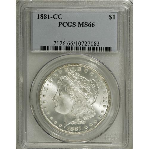 <B>1881-CC S$1 MS66 PCGS.</B></I> Pleasing mint frost graces both sides of this outstanding Carson City representative, and pin-point striking emboldens the design elements. Untoned surfaces are devoid of any mentionable flaws.<BR><I>From The Twin Hollows Collection, Part Two.</B></I><BR><BR><b>Shipping:</b> Coins & Currency (<a target="_blank" href="http://www.heritageauctions.com/common/shipping.php">view shipping information</a>)
