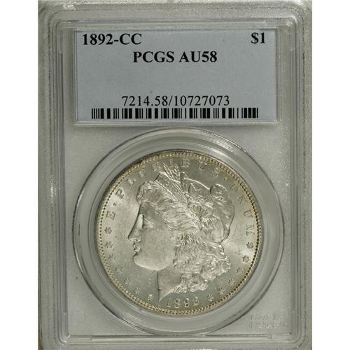 <B>1892-CC S$1 AU58 PCGS.</B></I> Generous luster is noted on bright, lightly abraded surfaces, and wisps of barely discernible color gravitate to the marginal areas. The design elements are adequately brought up.<BR><I>From The Twin Hollows Collection, Part Two.</B></I><BR><BR><b>Shipping:</b> Coins & Currency (<a target="_blank" href="http://www.heritageauctions.com/common/shipping.php">view shipping information</a>)