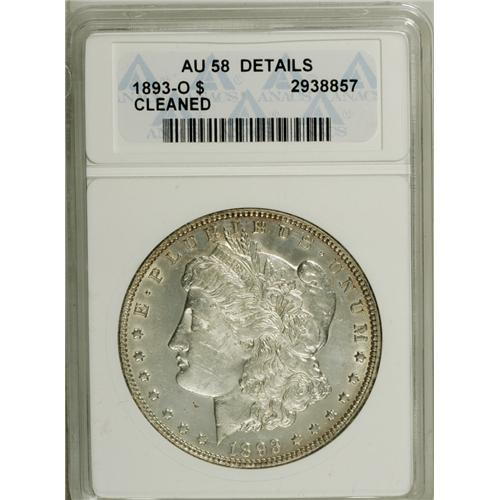 <B>1893-O S$1 --Cleaned--ANACS. AU58 Details.</B></I> Bright, lightly cleaned surfaces still retain luster in the protected areas, and traces of light gold-tan color gravitate to the borders of this low-mintage issue. Except for the typical softness in the hair around Liberty's ear, the design elements exhibit strong detail.<BR><I>From The Twin Hollows Collection, Part Two.</B></I><BR><BR><b>Shipping:</b> Coins & Currency (<a target="_blank" href="http://www.heritageauctions.com/common/shipping.php">view shipping information</a>)