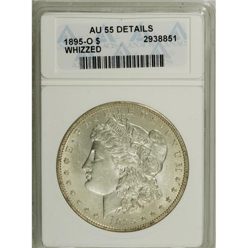 <B>1895-O S$1 --Whizzed--ANACS. AU55 Details.</B></I> The whizzing has left semii-circular lines on the bright surfaces that show hints of retoning along the margins. The design elements are well struck, save for minor softness on the hair over Liberty's ear and on the eagle's breast. No significant contact marks are noted over either side. An important key date Morgan.<BR><I>From The Twin Hollows Collection, Part Two.</B></I><BR><BR><b>Shipping:</b> Coins & Currency (<a target="_blank" href="http://www.heritageauctions.com/common/shipping.php">view shipping information</a>)