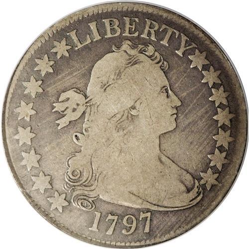 <B>1797 50C --Scratched--NCS. Fine Details.</B></I> O-102, Low R.6. Draped Bust Small Eagle half dollars, bearing the dates 1796 or 1797, are a highly desirable item. These coins have for the most part held their value since the inception of coin collecting in the United States in the 1850s. Whether or not a particular specimen is impaired appears to make little difference in the demand side of the equation. The realization that this series exhibits a low mintage (3,918 pieces) along with a low survival rate (probably less than 300 examples) prompts knowledgeable collectors to keenly compete for those examples that appear at public auction, "warts and all." In this respect, it is worth mentioning that, in a February 2005 study by this cataloger (Jon Amato) that was published in the <I>John Reich Journal,</B></I> Volume 16/Issue 2, fully 43 examples of the 216 pieces "captured" in the study analysis (nearly 20 %) revealed "major" problems (plugs, re-engraved designs, smoothed fields, removed graffiti/initials, deep and/or long scratches, porosity, etc.). Several other specimens exhibited "minor" problems (many of which were certified by 3rd party grading services). These included shallow scratches, light rim dings, light cleaning, wispy hairlines, etc.<BR> The coin presented in this lot does <I>not</B></I> fall within the category of "major" problems. The NCS holder says "scratched." True, there are a few unobtrusive short pinscratches on the lower part of the bust, but overall, this is a pleasingly toned specimen that shows two shades of natural gray (the design elements are highlighted by the slightly darker fields). Both sides are quite clean, and reveal no mentionable contact marks or adjustment marks. Some light streaks are noted in the obverse fields; we cannot be sure if these are toning streaks, or perhaps light erasure marks. Whatever the case, they are not distracting to the eye. I asked the other Heritage catalogers to inspect this coin, and to a person, all agreed that this was a lovely 1797 half dollar that should be in a "non-problem" holder.<BR> It is also important to mention that this 1797 half is the rarest of the four varieties (Overton-102). The Bust Half Nut Club elevated the O-102 from R.5 to low R.6 in its 2004 rarity ratings. The new owner of this desirable piece of Americana will not regret her/his engagement in spirited bidding to acquire this marvelous rarity.<BR><I>From The Lanterman's Mill Collection.</B></I><BR><BR><b>Shipping:</b> Coin/Currency (<a target="_blank" href="http://www.heritageauctions.com/common/shipping.php">view shipping information</a>)