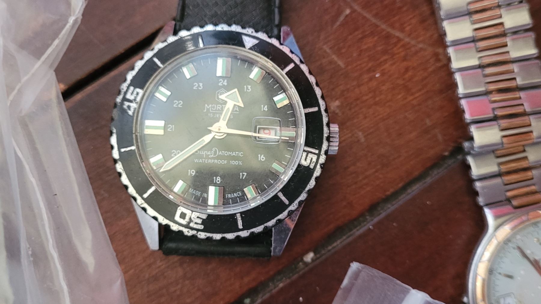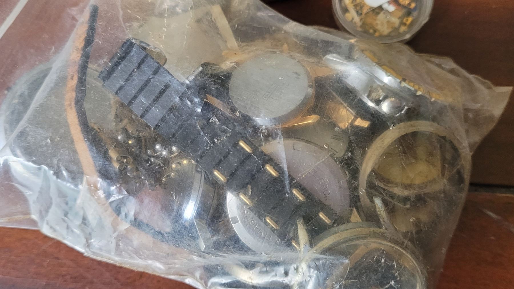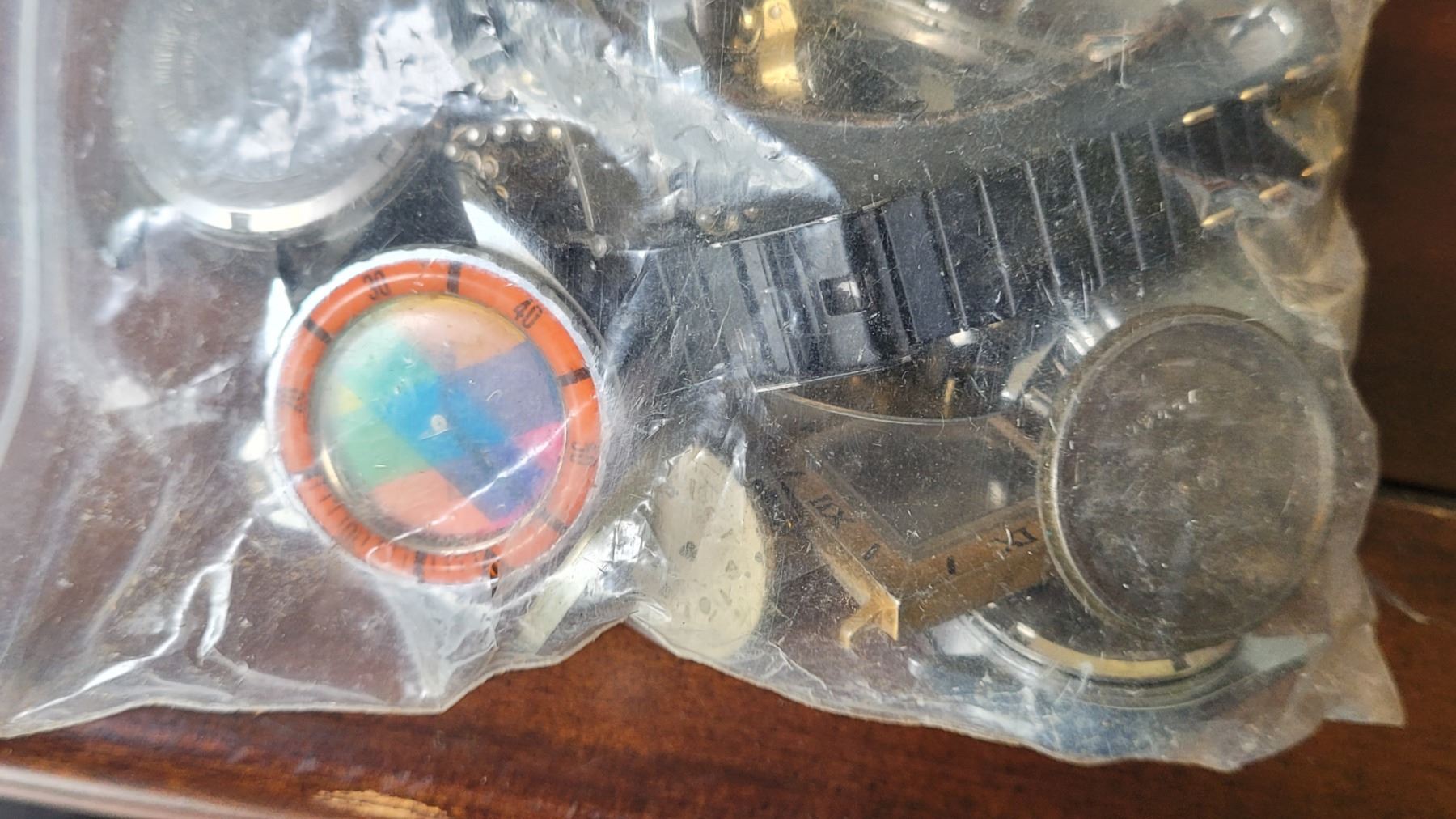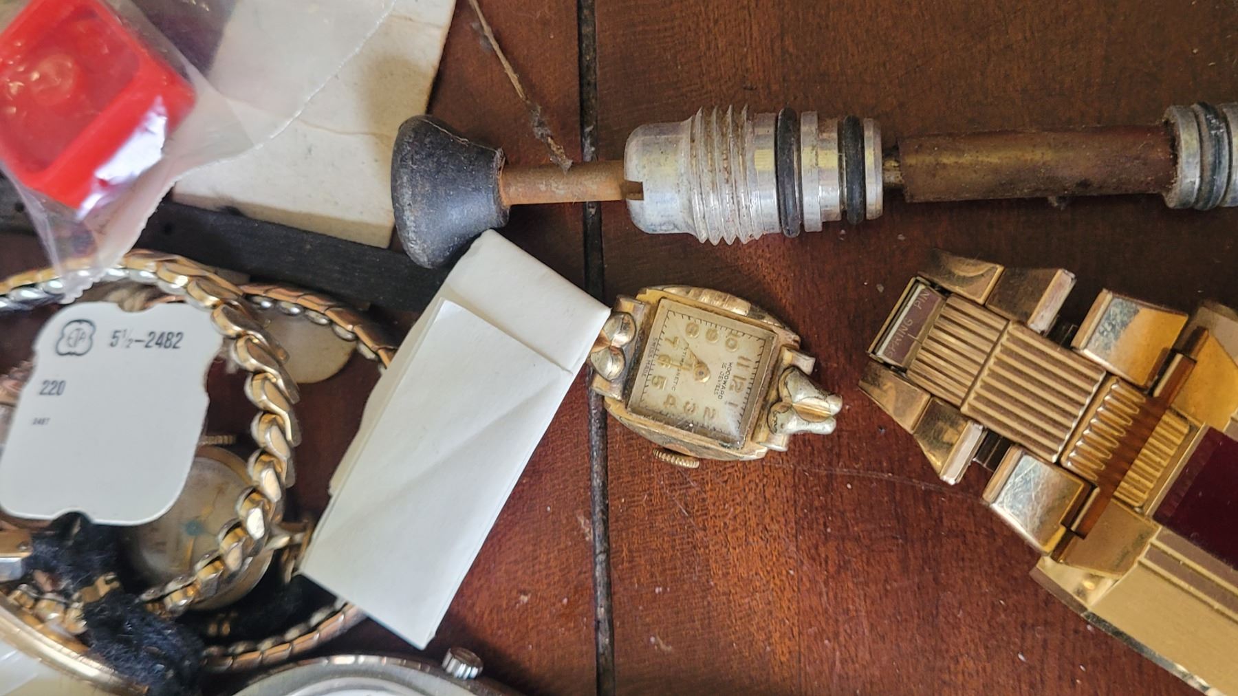 Assortment of wrist watches, and domed clocks sent in for repair, all untested. Pickup at 10 am