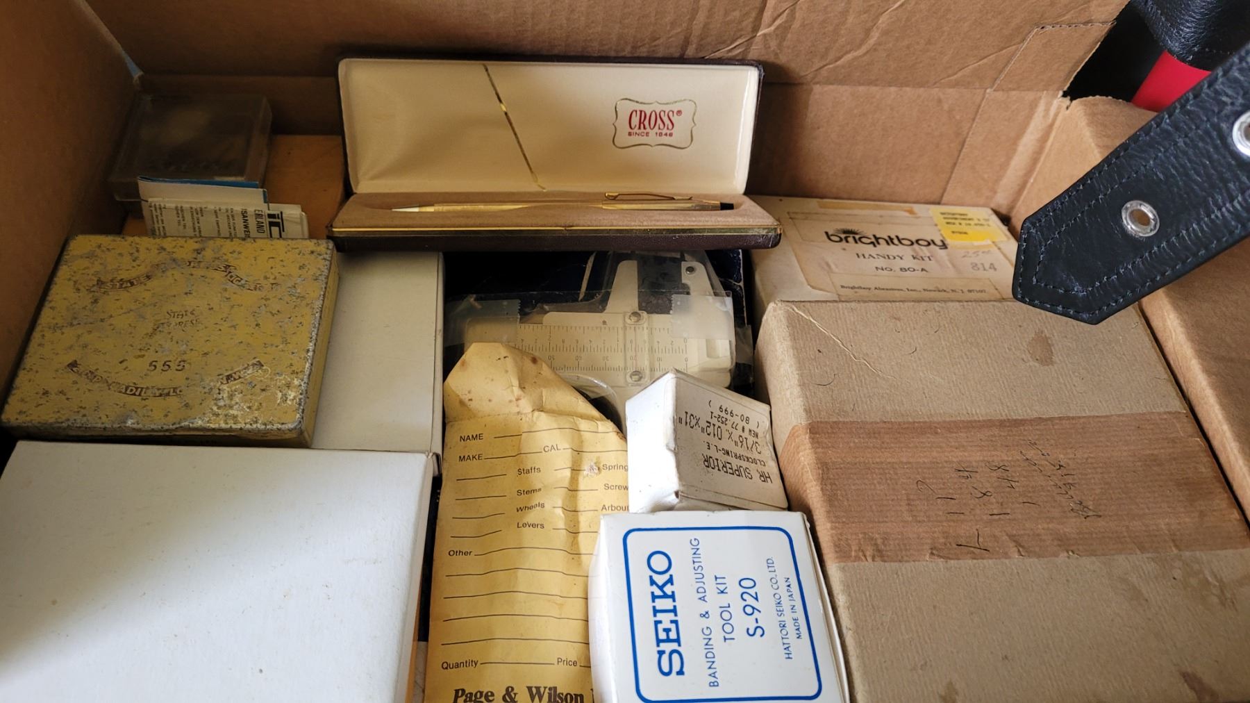Cross Pen & Watch repair parts, Instruments and a large assortment of wrist watches, untested. Pickup at 10 am