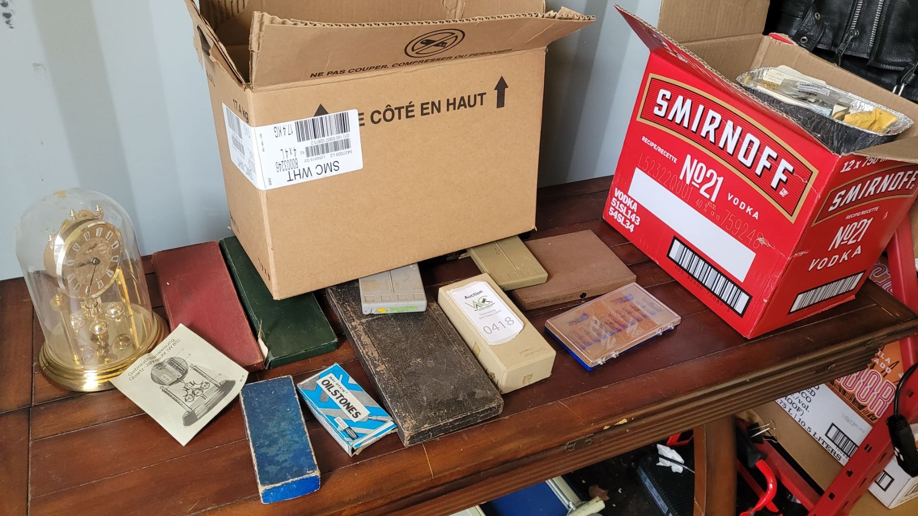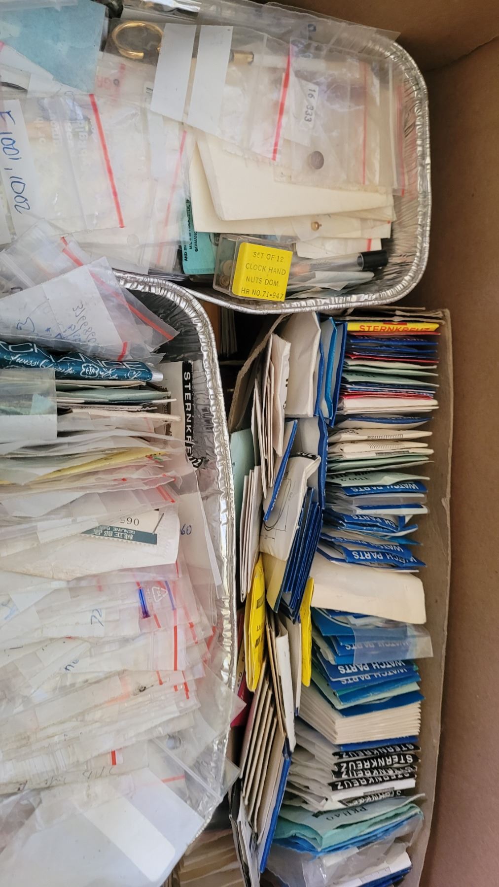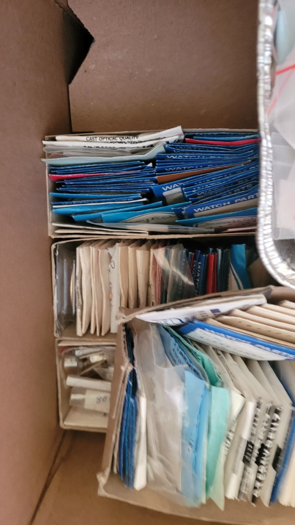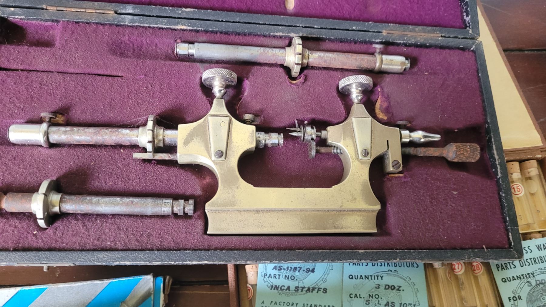 Watch repair instruments and parts. Glass dome clock, untested. Pickup at 10 am