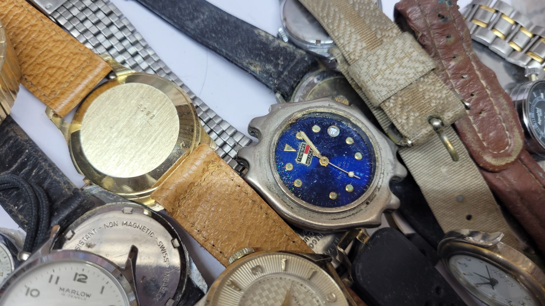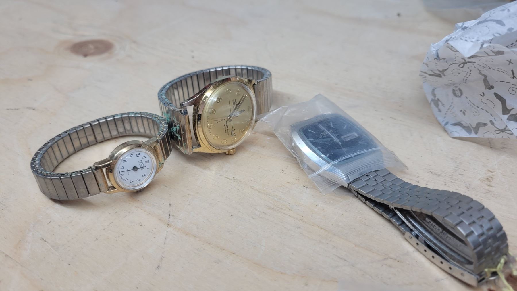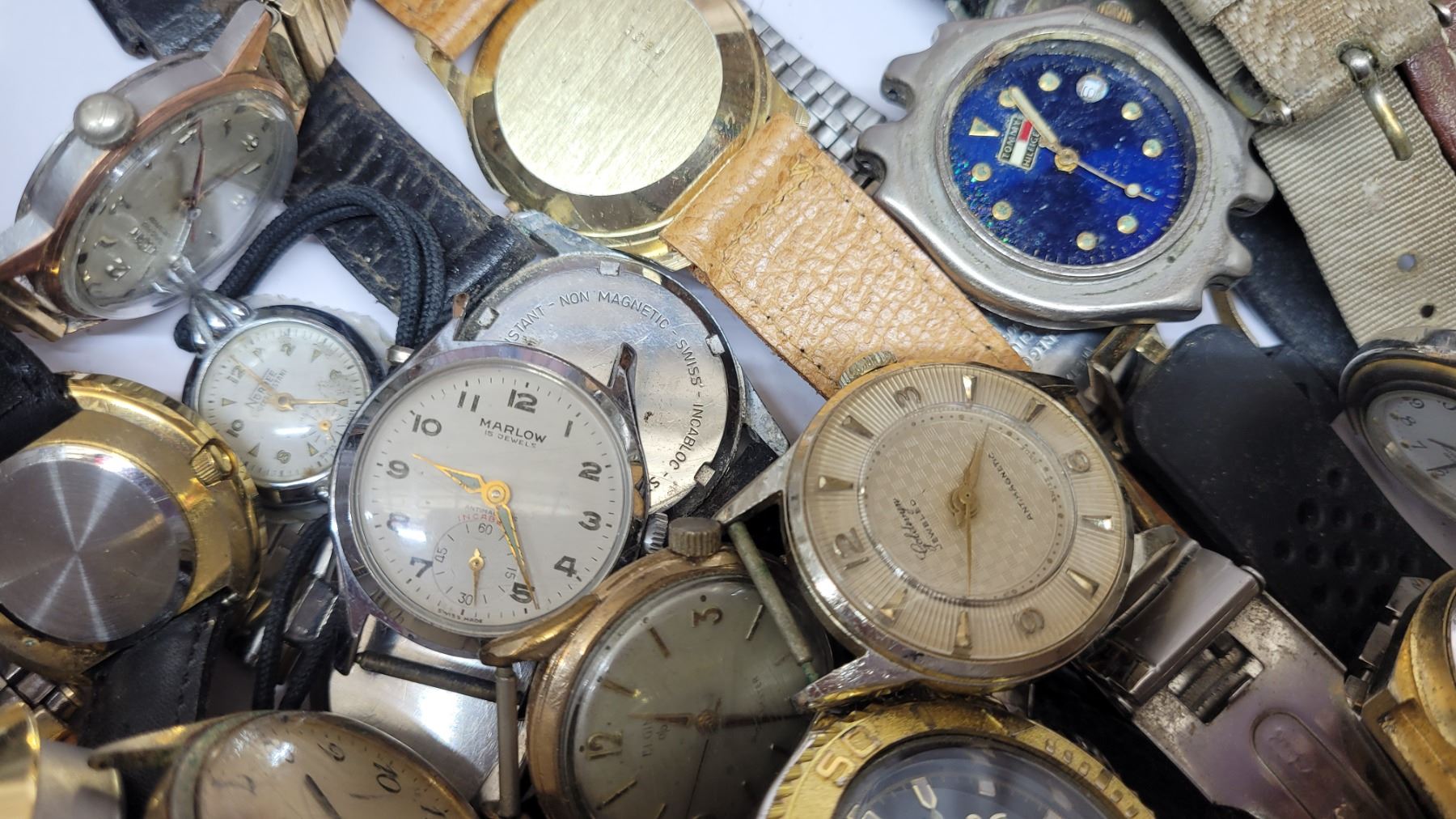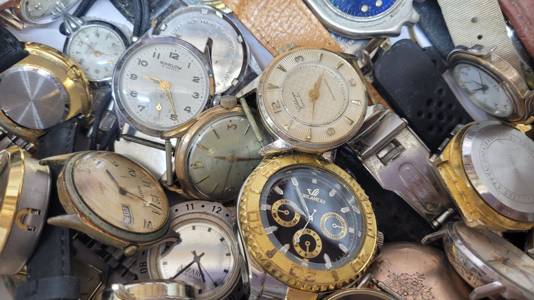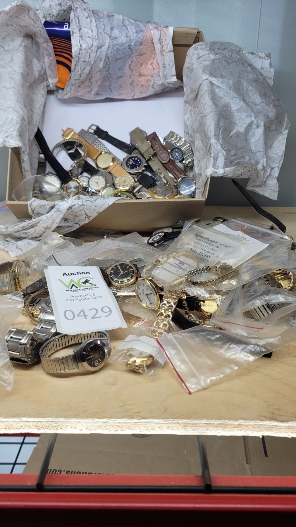 Large assortment of wrist watches, untested. Pickup at 10 am