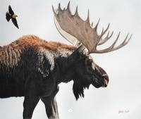 From out in Left Field/Bull Moose by LINDSAY SCOTT original colored pencil on paper image 22"x27"