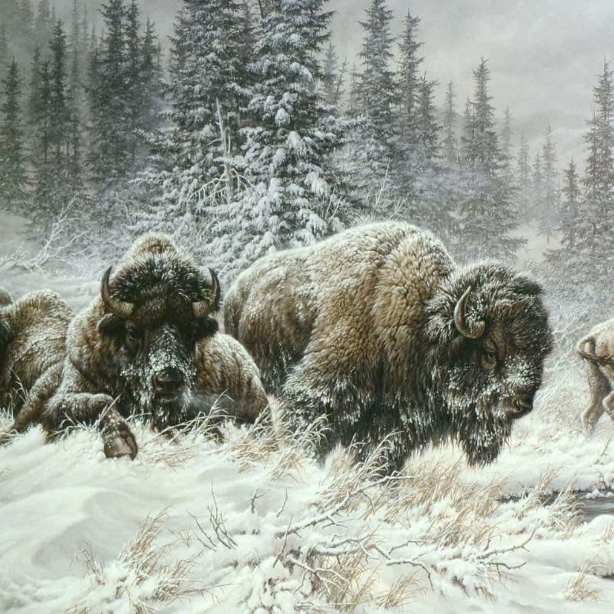 "Front Range Storm - Colorado Buffalo" is a limited edition lithograph on paper by Larry Fanning (1938-2014), numbered and hand signed with a Letter of Authenticity. Measures approximately 36" x 20" (image).